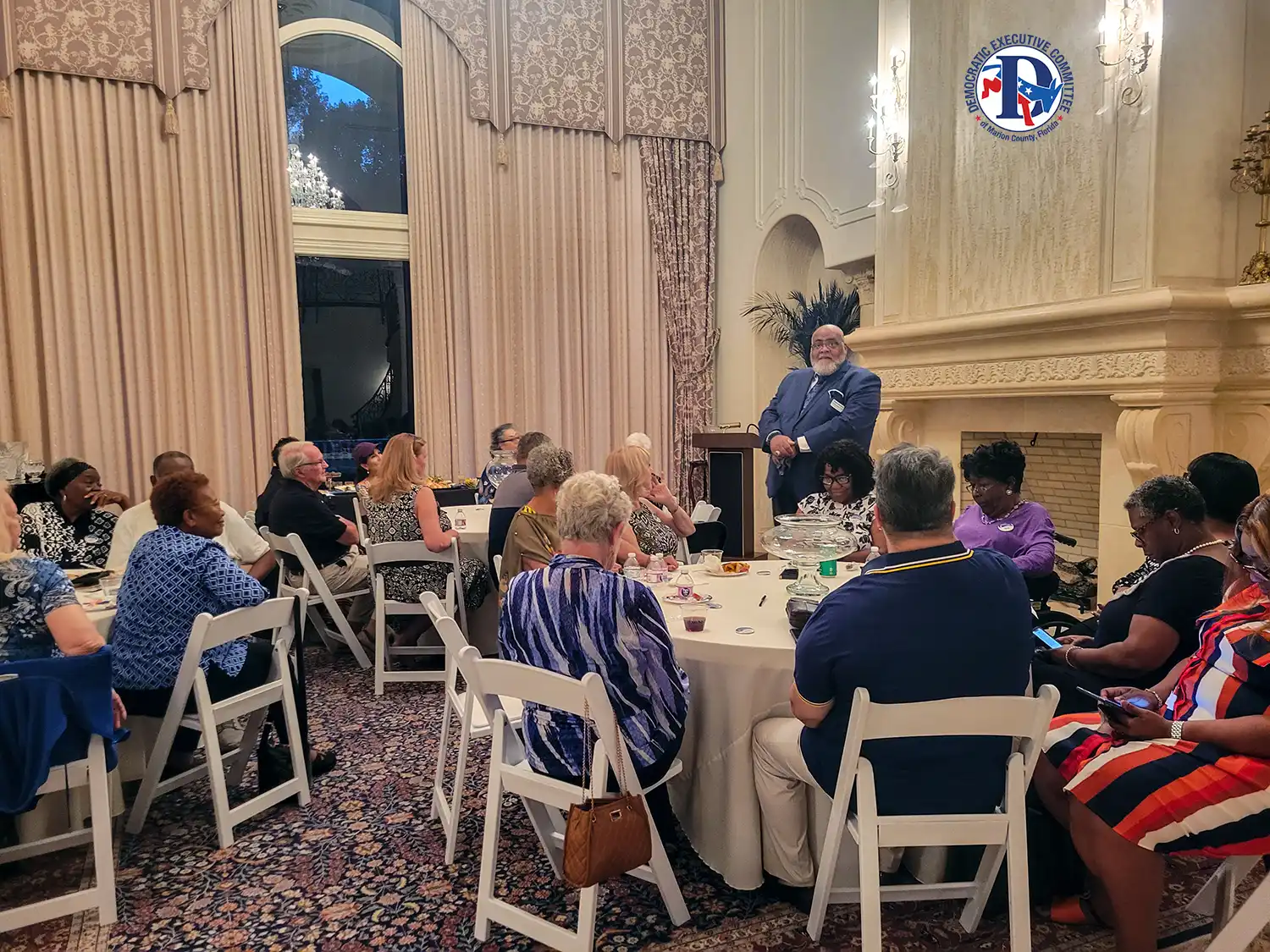 Candidate for U.S. House of Representatives FL District 6, James Stockton enjoyed a full house of support on September 6, 2024, hosted by Dr. Manal Fakhoury in Ocala. With a rapt audience fully engaged, Stockton clearly expressed his positions on health care, education, women’s rights, the environment, and energy.